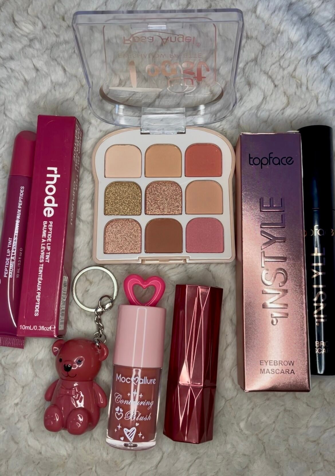✨ Elevate your beauty routine with this dreamy collection! Featuring the Toast Eyeshadow Palette for versatile looks, Rhode Peptide Lip Tint for luscious lips, Topface InStyle Eyebrow Mascara for defined brows, Blush for a radiant glow, and a stunning lipstick to complete your look. Your ultimate makeup essentials, all in one set! 💄💖